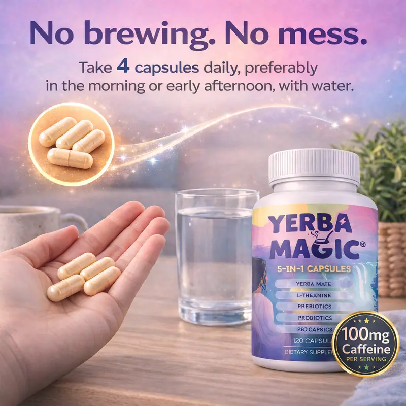 Boost energy, focus, and digestion with Yerba Magic Capsules. No brewing, no crash. These plant-powered capsules are your clean solution for daily energy and wellness. Convenient and mess-free, they fuel your body and mind with every dose.