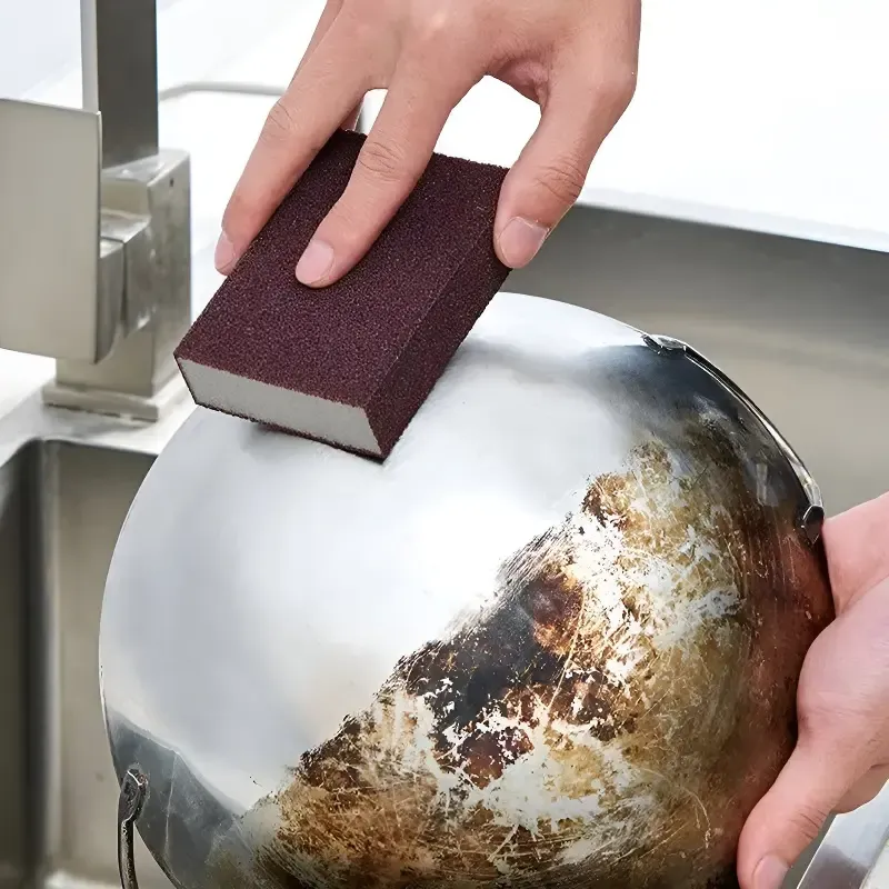 set designed for removing rust from metal pots. It's a potent tool for household kitchen cleaning. This sponge excels at tackling pot rust and other cleaning challenges. Its effectiveness ensures your kitchen gadgets stay spotless. A practical addition to any cleaning routine, it enhances your ability to keep your home tidy effortlessly.
